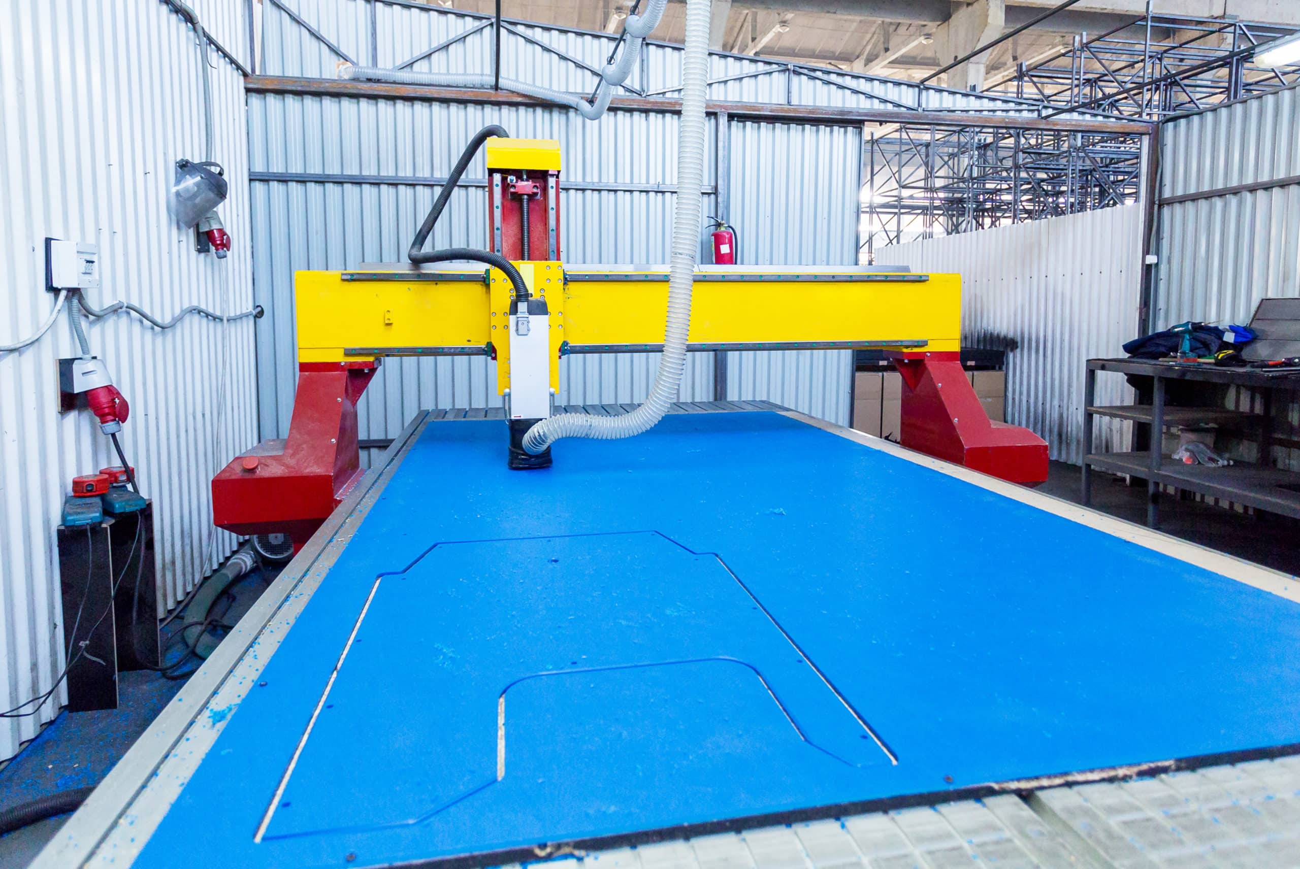 Sklejka wodoodoporna, którą używamy do produkcji pumptracków, czy skateparków jest w całości wycinane na frezarkach CNC.